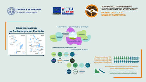 Επιπλέον των ανωτέρω η Crowdpolicy συνεχίζει την υλοποίηση, ως ανάδοχος της Περιφέρειας Νοτίου Αιγαίου, του ερευνητικού έργου “Υποστήριξη Λειτουργίας του Περιφερειακού Παρατηρητηρίου Κοινωνικής Ένταξης Νοτίου Αιγαίου”, το οποίο συγχρηματοδοτείται από το Ευρωπαϊκό Κοινωνικό Ταμείο (ΕΚΤ) μέσω του Ε.Π. Νοτίου Αιγαίου 2014–2020. Στο πλαίσιο αυτό πραγματοποίησε το 2021 την μεγαλύτερη έως σήμερα κοινωνική/οικονομική επιτόπια έρευνα στα νησιά των Κυκλάδων και της Δωδεκανήσου και συνεχίζει με επιτυχία την ερευνητική διαδικασία. Περισσότερα: https://socialobservatory.pnai.gov.gr/